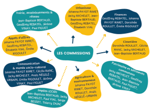 Dans le document ci-dessous, vous trouverez la liste des commissions dont les élus ont la charge.
